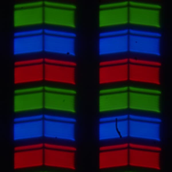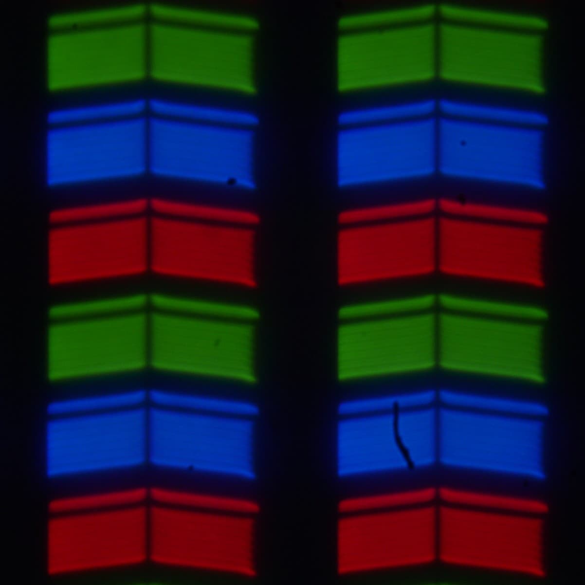 В данном планшете используется матрица типа IPS. Микрофотографии демонстрируют типичную для IPS структуру субпикселей: