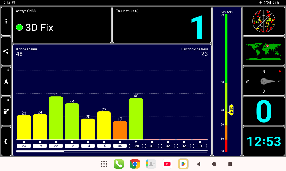 Что касается Wi-Fi, то здесь не поддерживается стандарт Wi-Fi 6 (802.11ax), но есть поддержка Wi-Fi 5 (802.11aс), в том числе диапазона 5 ГГц. Отметим, что планшет оснащен спутниковым навигационным модулем с поддержкой GPS, Глонасс, Galileo и Beidou. Это его существенный плюс по сравнению с тем же Honor Pad 9. Правда, при холодном старте спутники обнаруживаются не очень быстро, требуется ждать более минуты, чтобы добиться точности позиционирования в 1 метр.