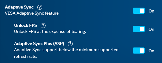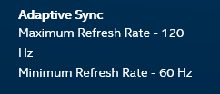 Вывод может осуществляться с глубиной цвета 10 бит на цвет, но использовать это преимущество вряд ли получится. Судя по данным на контрольной панели с настройками видеоадаптера, экран поддерживает Adaptive Sync в диапазоне от 60 до 120 Гц: