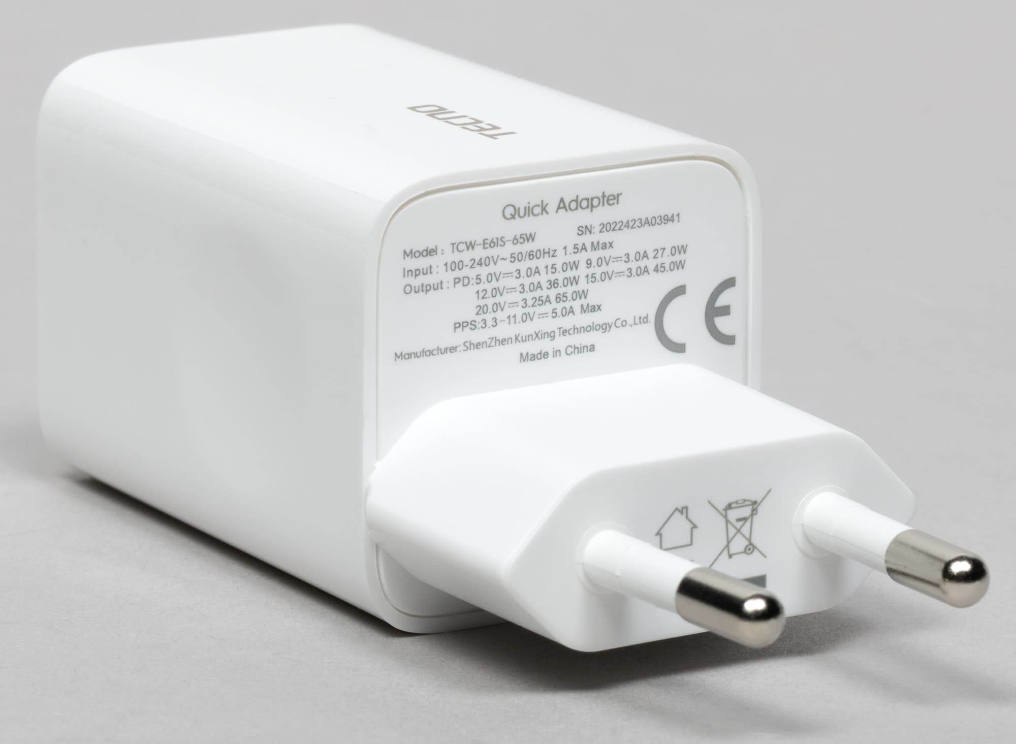| Адаптер питания | 65 Вт (PD 20 В 3,25 А, PPS 3,3—11 В 5 А), 107 г, с кабелем длиной 1,8 м | |