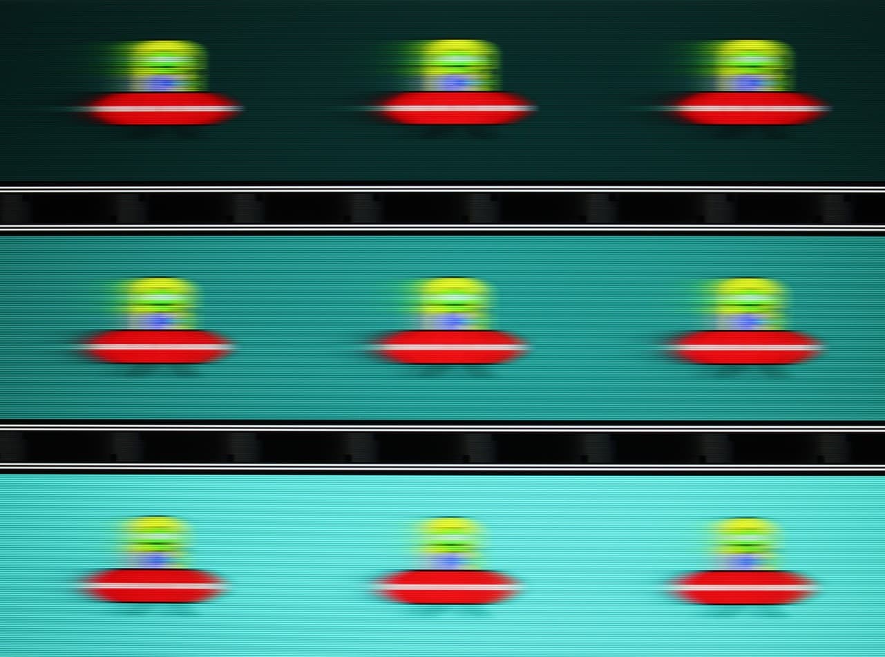 Для наглядного представления о том, что на практике означает такая скорость матрицы, и какие артефакты может вызвать разгон матрицы, приведем снимки, полученные с помощью движущейся камеры. Такие снимки показывают, что видит человек, если он следит глазами за двигающимся на экране объектом. Описание теста приведено тут, страница с самим тестом тут. Использовались рекомендованные установки (скорость движения 960 пиксель/с), выдержка 1/15 с. Снимок сделан для кадровой частоты 60 Гц.