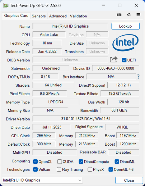На системной плате распаяны чипы памяти LPDDR4-4266 производства Samsung. Утилиты рапортуют о четырехканальном режиме, но по пропускной способности это равнозначно двухканальному у более старых типов памяти вроде DDR4.