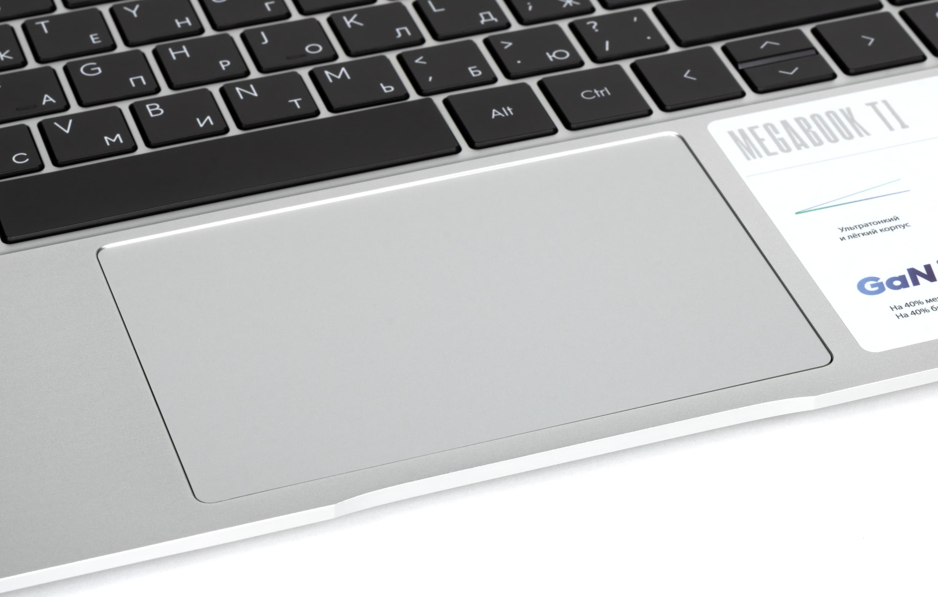 Тачпад довольно большой (120×78 мм), его поверхность слегка заглублена, фактура более гладкая, чем у панелей корпуса, из-за чего водить пальцем приятнее, но отпечатки более заметны. Выделенных клавиш нет, но левый и правый ближние его края вполне могут работать как соответствующие кнопки мыши. Предусмотрено сочетание кнопок для его быстрого отключения.