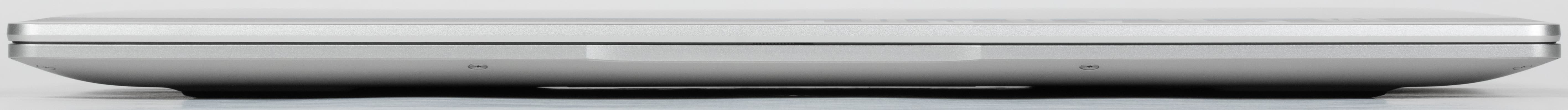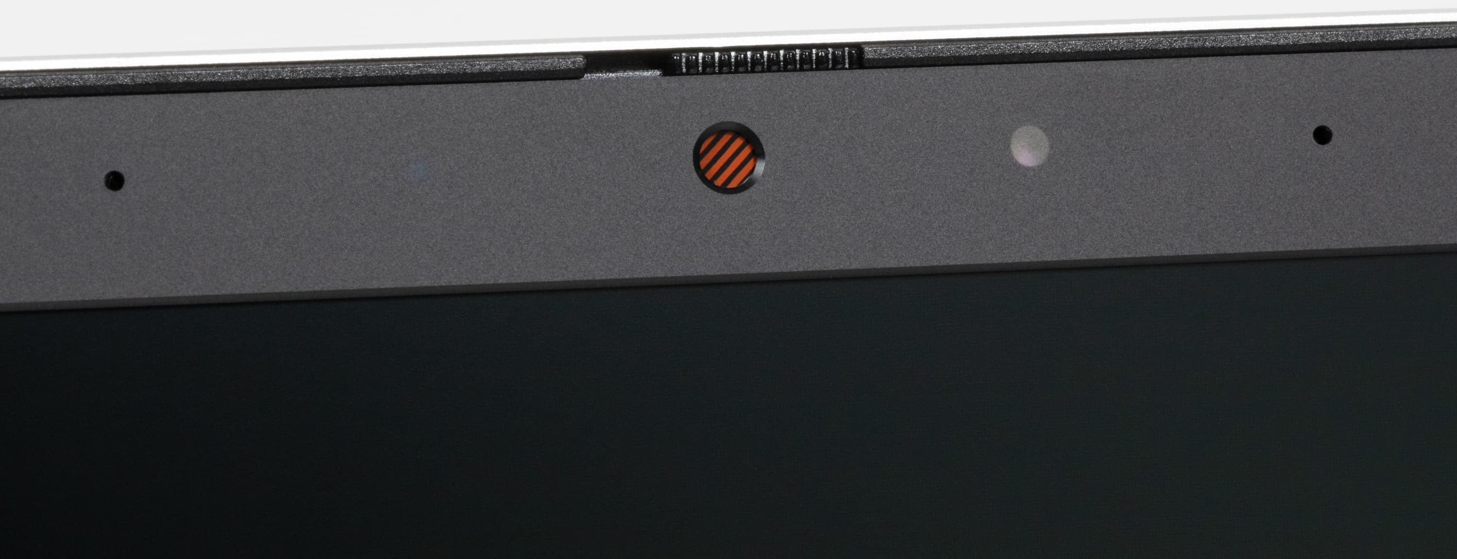Пластиковая рамка вокруг экрана имеет ширину по бокам 6,9 мм, вверху 12 мм (там расположена веб-камера с индикатором, микрофоны и датчик освещенности) — эти замеры включают и кромку наружной металлической панели; внизу 18,3 мм до изгиба края крышки.