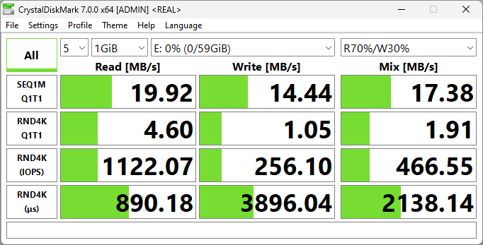 В тестах CrystalDiskMark он показал неплохую производительность.