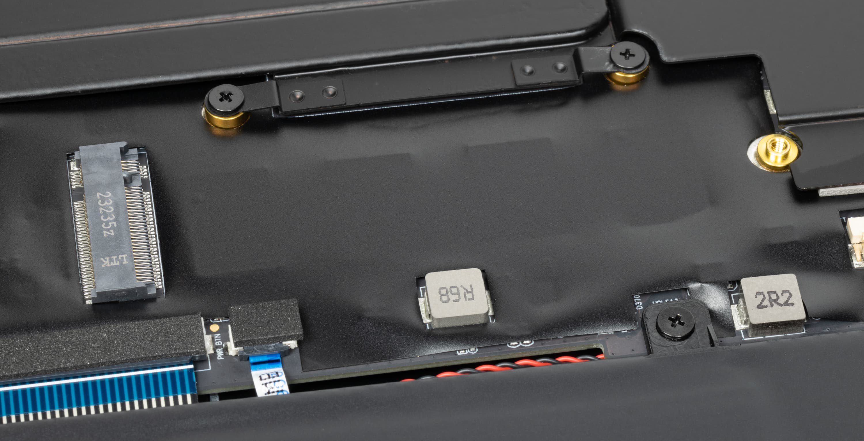 Возможности апгрейда шире, чем у очень многих подобных ноутбуков: правда, память распаяна, однако можно не только заменить SSD, но и добавить второй.