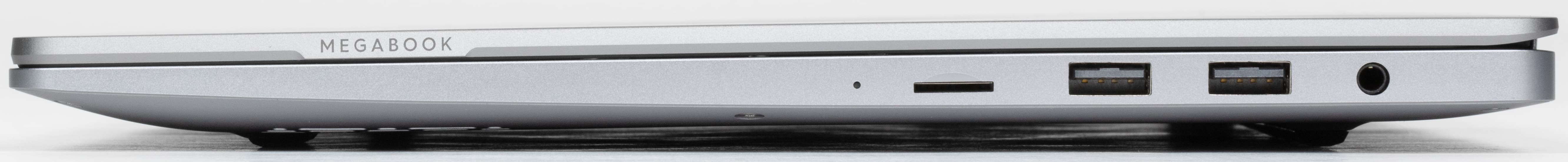 Набор интерфейсных портов обычный для моделей Tecno Megabook: довольно богатый по меркам подобных ноутбуков, а в отношении беспроводных интерфейсов Wi-Fi/Bluetooth еще и вполне современный по номенклатуре. Отсутствие разъема и адаптера для проводной сети вполне простительно для компактного аппарата, зато многим владельцам будет полезен картовод microSD, который встречается не всегда.