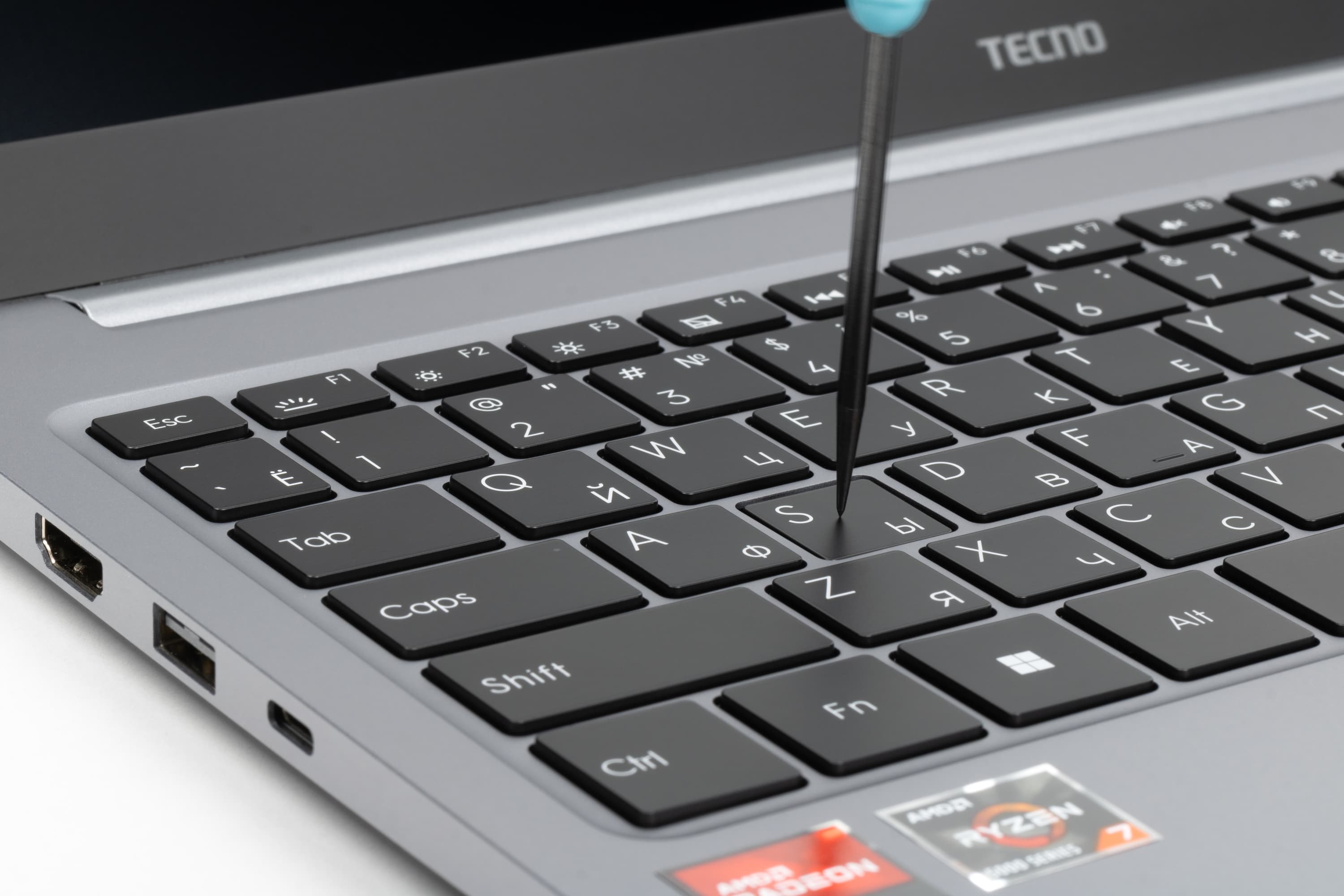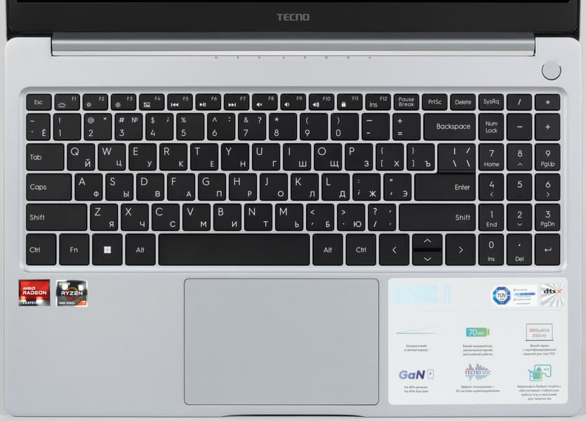 Клавиатуру, как и в других моделях Tecno, можно упрекнуть за «стрелки» с половинной высотой, зато есть цифровой блок, пусть и трехрядный — мы считаем это благом, хотя некоторые читатели отрицают полезность даже полноценного цифрового блока. А вот к автоотключению подсветки после пятнадцати секунд «простоя», на которое нельзя воздействовать, вряд ли многие отнесутся положительно.