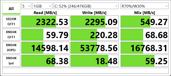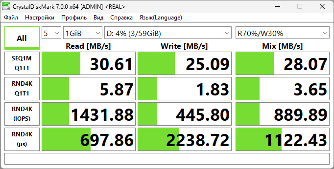 В тестах CrystalDiskMark он показал неплохую производительность.
