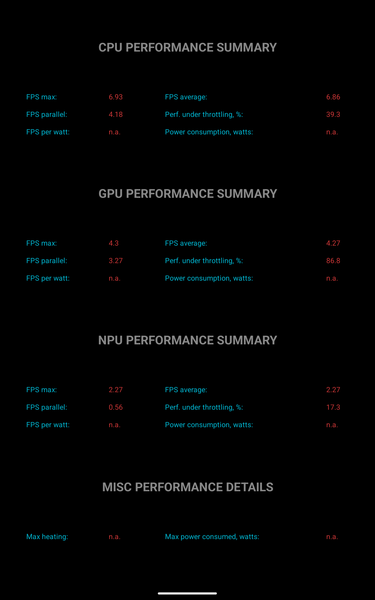 Тест на снижение производительности при нагреве мы проводим с помощью программы Burnout Benchmark, которая позволяет нагружать CPU, GPU и NPU: