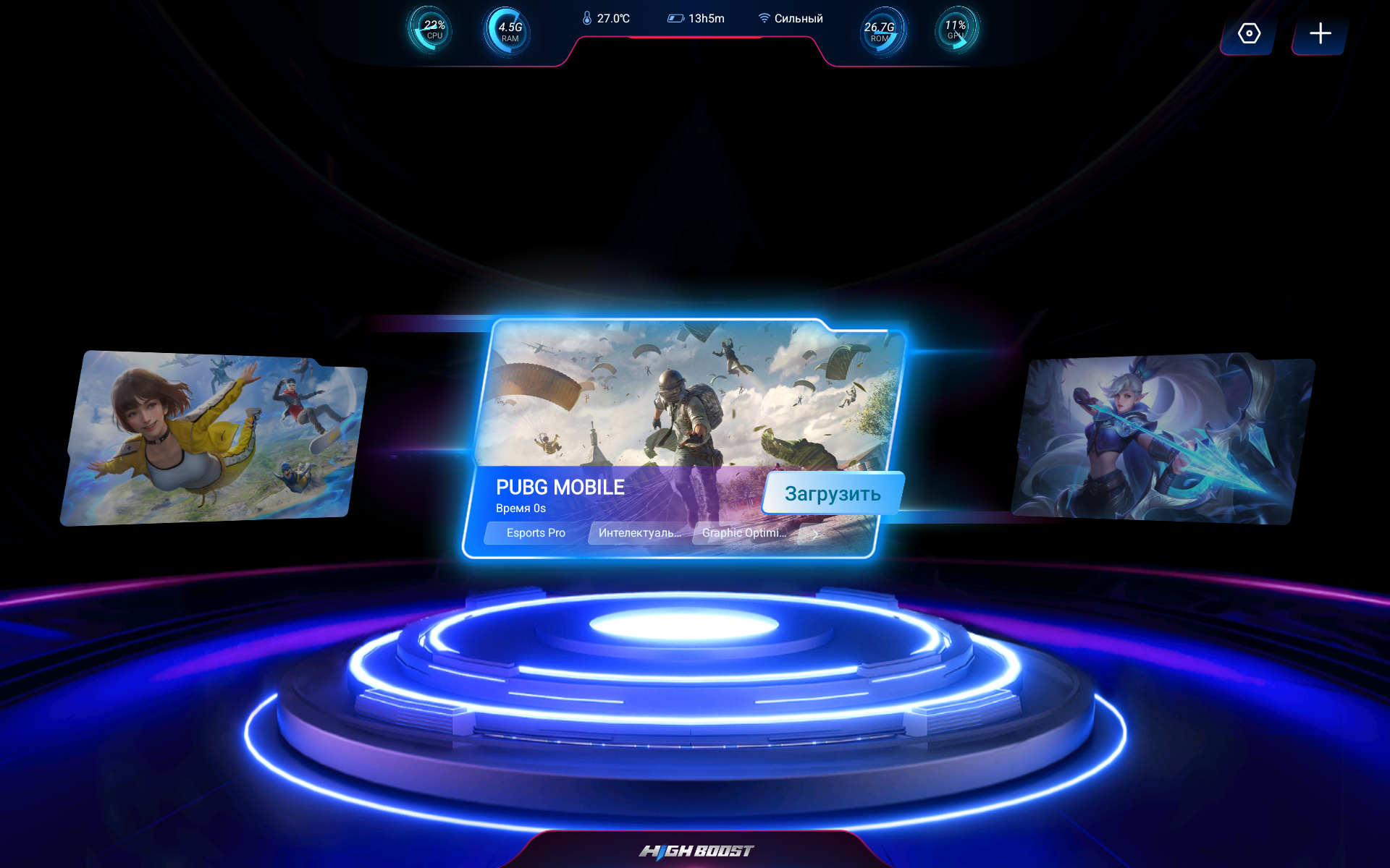 В меню Game Space всего три игры: Free Fire, PUBG Mobile и Mobile Legends: Bang Bang. Но вы можете поставить любую другую, после чего в настройках Game Space указать, чтобы игра запускалась через этот сервис. И во время игрового процесса слева у вас будет маленькая полоска, потянув за которую, вы увидите настройки Game Space. Там в реальном времени отображается количество кадров в секунду, текущая загрузка CPU и GPU, можно придать графике «реалистичный» вид (эффект весьма сомнительный), записать видео с экрана, разрешить/запретить показ уведомлений Whatsapp и Messenger во время игры... В общем, для любителей игр на планшете это весьма полезная штука.