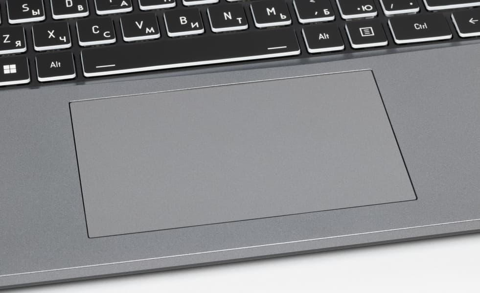 Навигационная панель у ноутбука не имеет выделенных кнопок, но нажатия сопровождаются отчетливыми щелчками и соответствующими откликами. Кликпад заметно смещен влево от условного центра. Он не очень большой, но достаточно удобный в пользовании. Уверенно отрабатываются нажатия в ближайших к пользователю ⅔ площади.