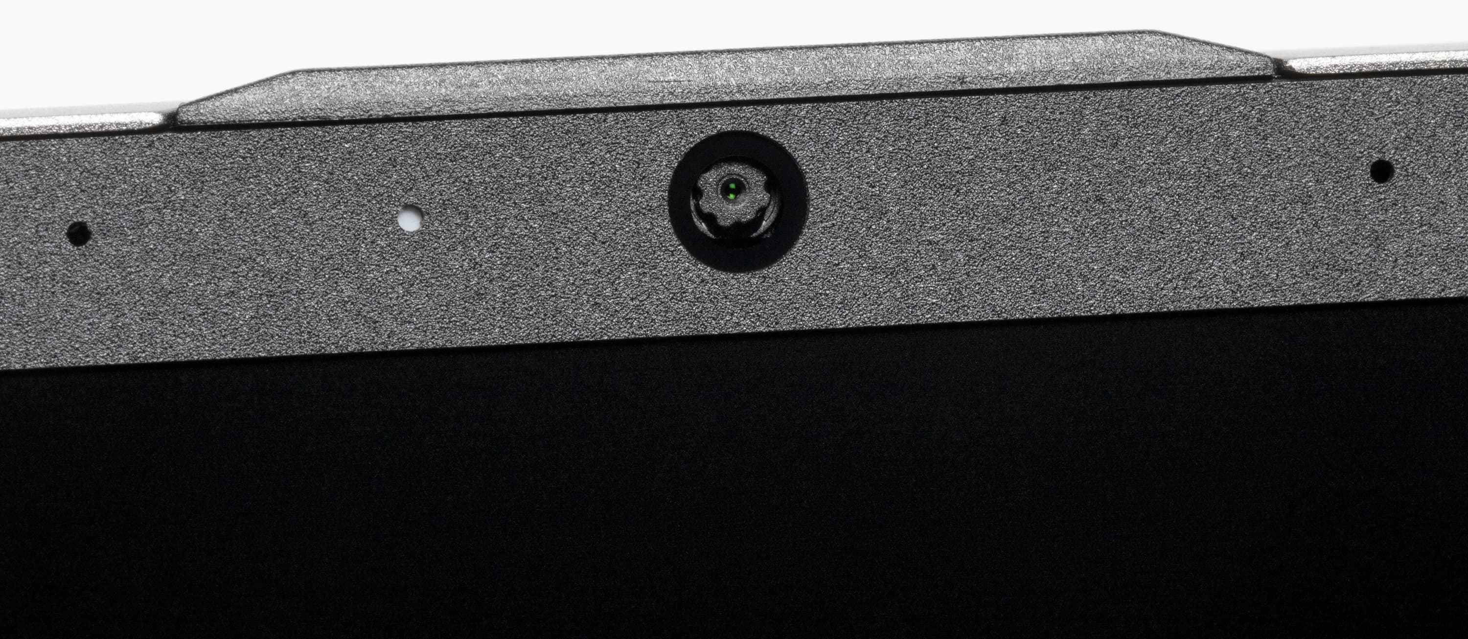 В верхнюю часть рамки встроена миниатюрная веб-камера с разрешением видео 1280×720 пикселей при 30 кадрах/с. С двух сторон от нее видны отверстия микрофонов, а слева — светодиодный индикатор активности устройства. Качество видео традиционно невысокое.