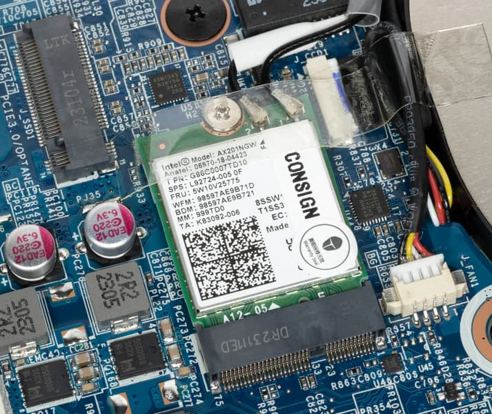 Адаптер беспроводной связи представлен широко распространенным устройством Intel AX201NGW (Harrison Peak), соответствующим классу Wi-Fi 6 и поддерживающим стандарт IEEE 802.11ax.
