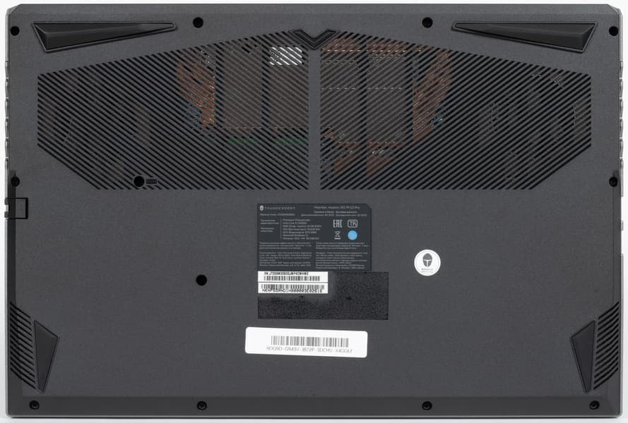 На крышке выделяется рельефный логотип серии игровых ноутбуков Thunderobot.