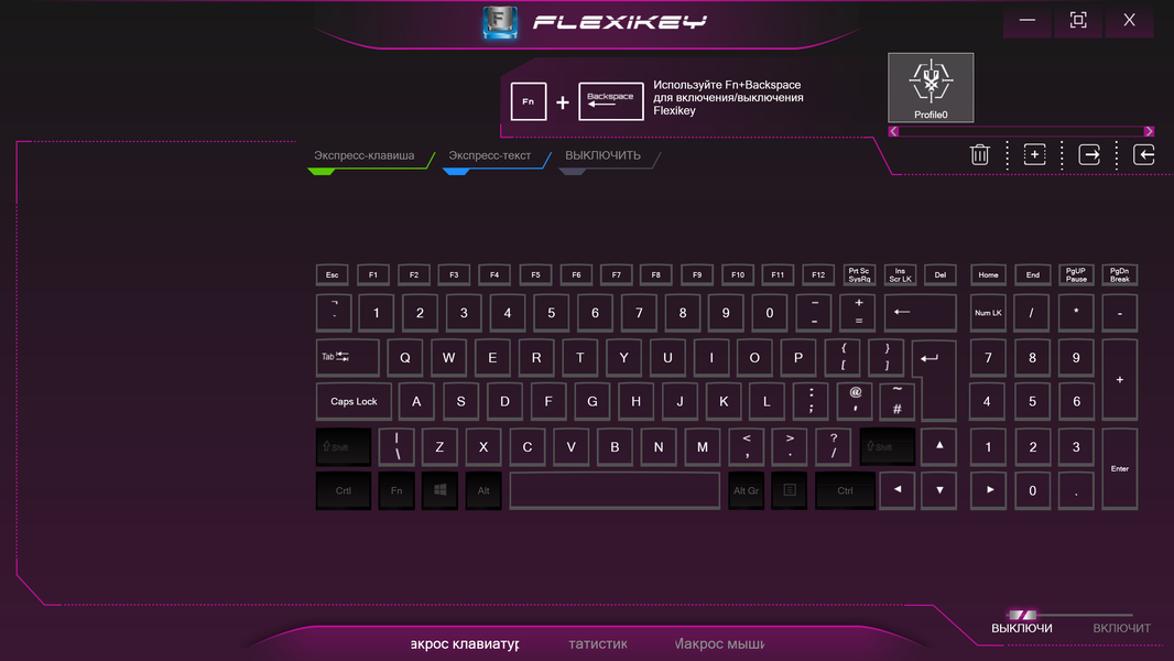 В разделе FlexiKey можно назначить клавишам и кнопкам мыши пользовательские макросы. Это наверняка оценят игроманы, в особенности те, кто занимается играми по сети и ведет видеотрансляции.