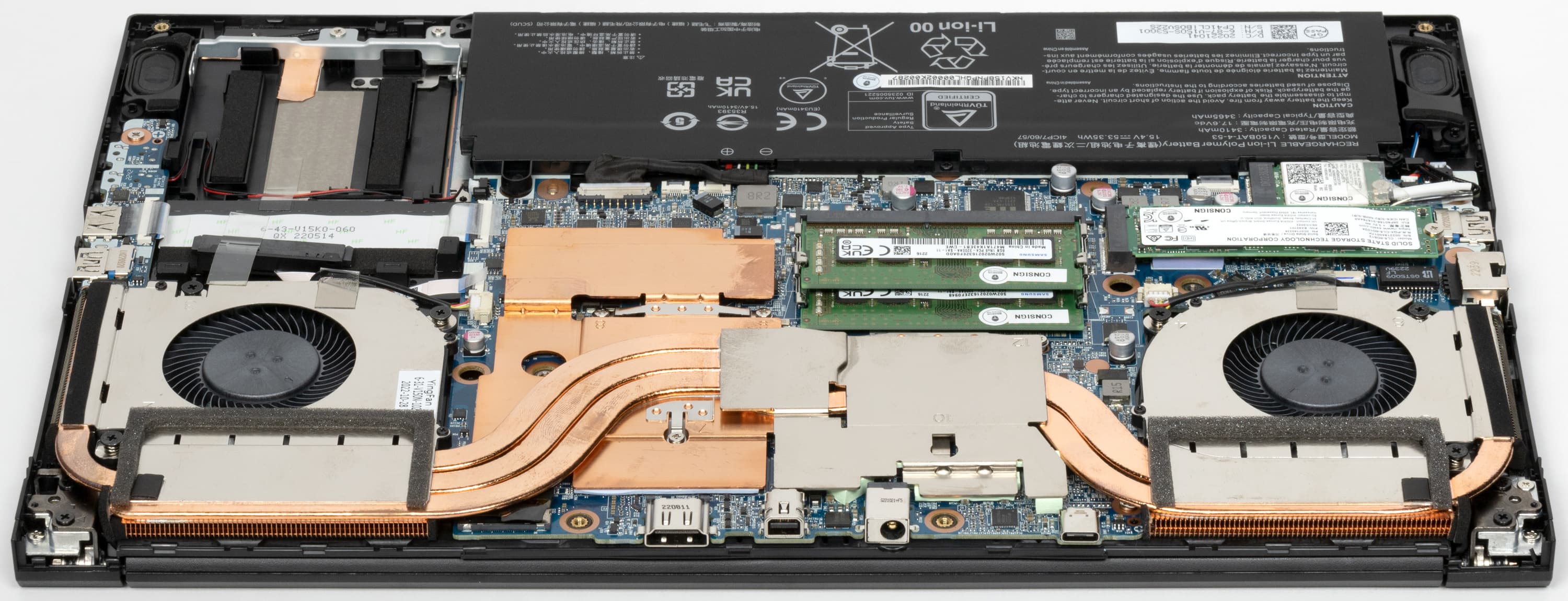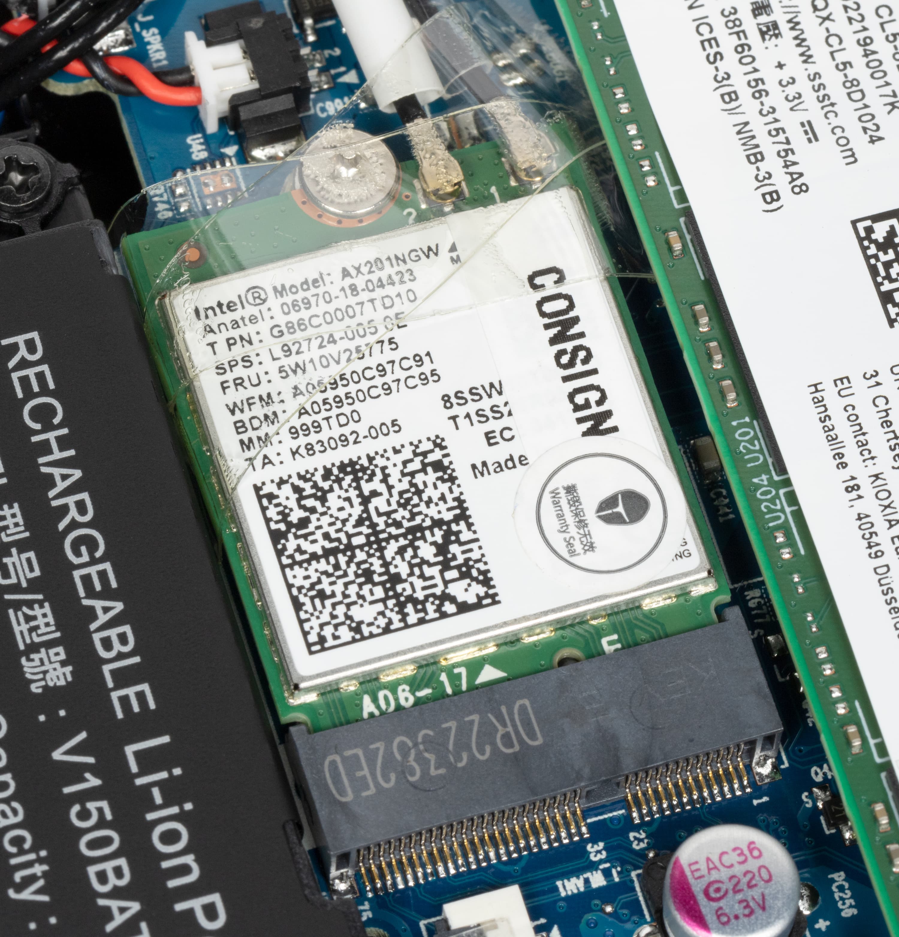 Качество сборки и монтажа компонентов у Thunderobot 911 X Wild Hunter G3 XD высокое, у Thunderobot 911 MT Pro D — посредственное. Оперативная память, твердотельные накопители, контроллеры Ethernet, веб-камеры и блоки питания у ноутбуков одинаковые, а адаптеры Wi-Fi разные: у первого, на более новой платформе, — старый Intel AC9462 (Wi-Fi 5, 802.11ac), а y второго, на прошлогоднем «железе», он новее и лучше — Intel AX201 (Wi-Fi 6, 802.11ax); в ходе испытаний скоростей беспроводной связи первый сокрушительно проигрывает второму. Быстродействие комплектных NVMe-накопителей плачевное: скорости последовательной записи у Thunderobot 911 MT Pro D соответствуют лишь возможностям SATA SSD, а у Thunderobot 911 X Wild Hunter G3 XD — лишь жесткому диску. Аппаратная модернизация у первого ноутбука возможна за счет установки SATA SSD или винчестера в отсек для 2,5-дюймового устройства, а у второго для этого предназначен пустующий слот M.2
