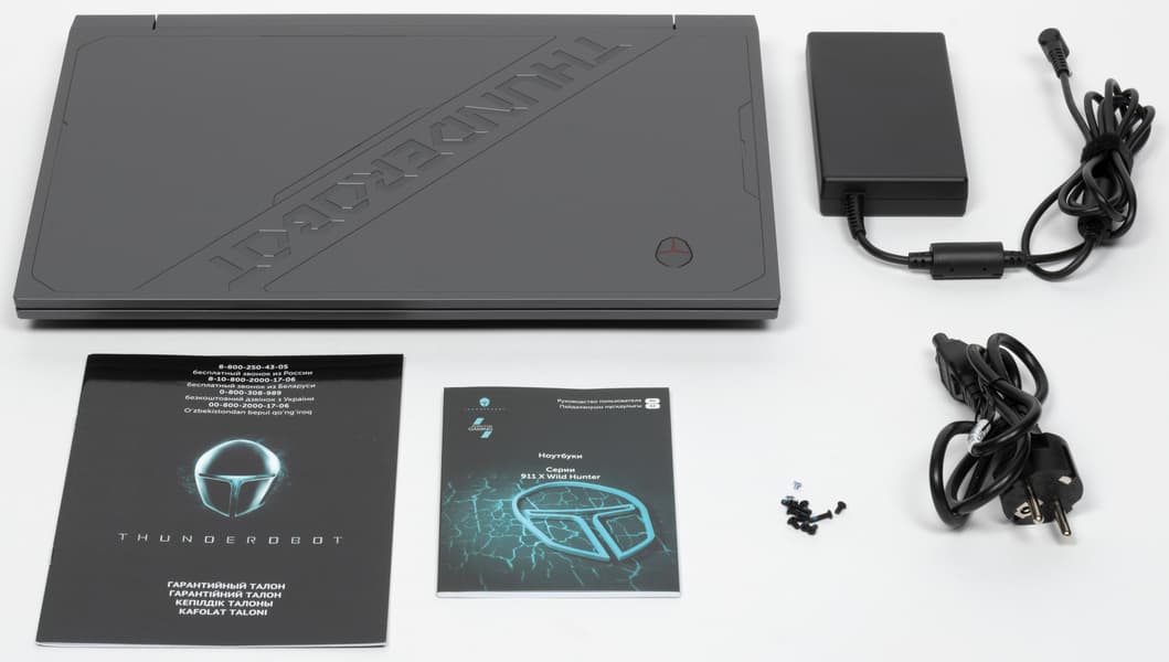 К Thunderobot 911 MT Pro D приложена еще и салфетка из микрофибры (очевидно, для протирки поверхности экрана). Адаптеры питания идентичны вплоть до номера модели (на фото размеры отличаются из-за неодинаковых ракурсов съемки). Оба обеспечивают на выходе 20 В при силе тока 9 А (мощность 180 Вт).
