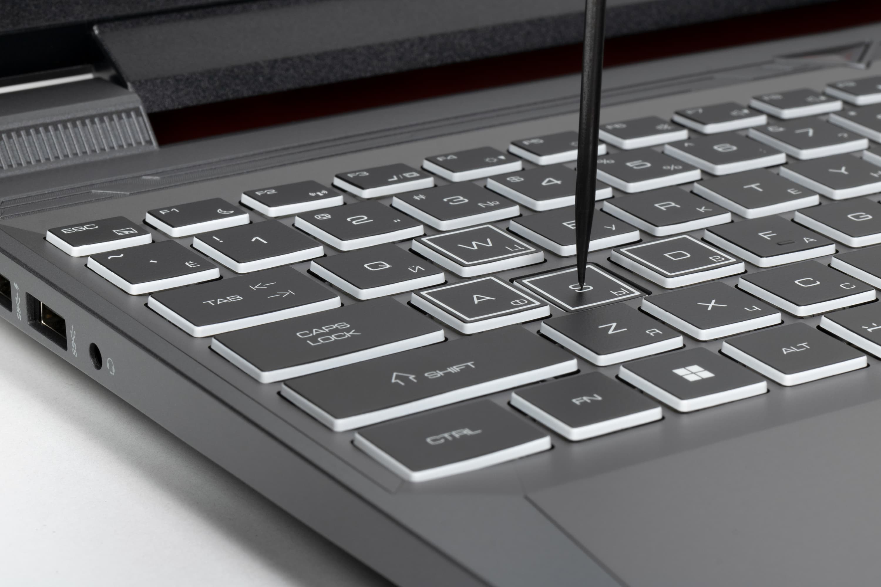 Алфавитно-цифровые и символьные клавиши достаточно крупные (15×15 мм), расстояние между их центрами составляет 17 мм, а между краями — 2 мм. У Thunderobot 911 X Wild Hunter G3 XD утолщенными белыми рамками выделены традиционные «игровые» навигационные клавиши W, A, S, D.