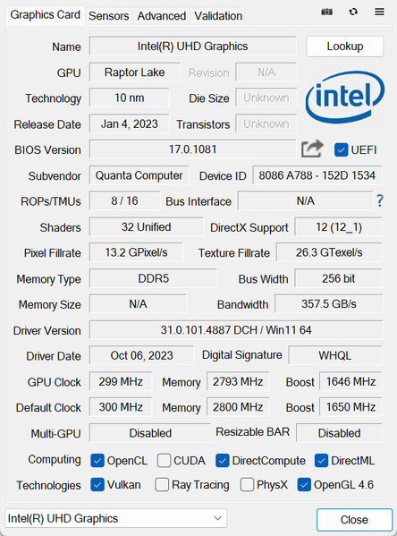 Имеется и интегрированный видеоадаптер Intel UHD Graphics — понятно, в играх его использовать нет смысла.