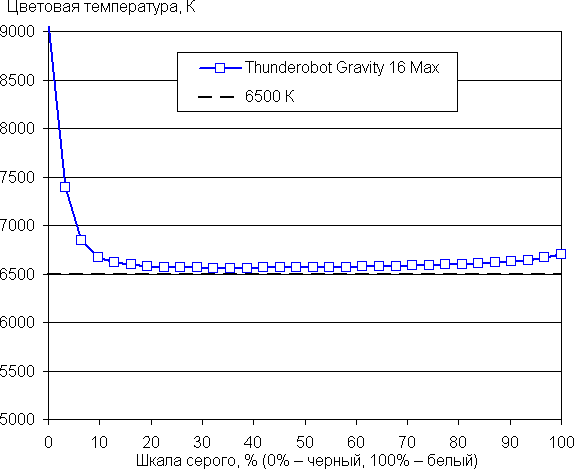 Вернемся к экрану тестируемого ноутбука. Если настройка яркости равна 0%, то яркость снижается до 30 кд/м². В полной темноте яркость его экрана получится понизить до комфортного уровня.