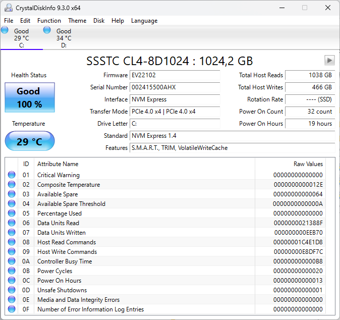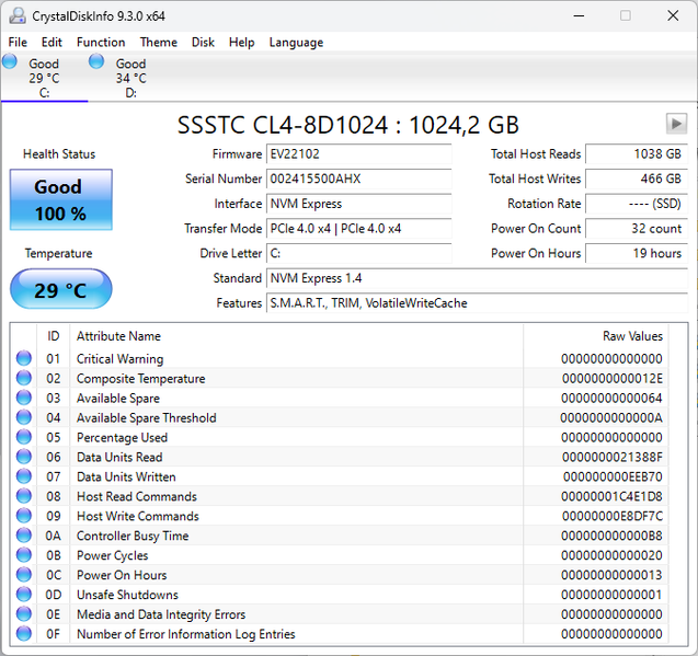 | Накопитель | SSD 1 ТБ SSSTC CL4-8D1024, M.2 2280, NVMe, PCIe 4.0 x4 есть свободный слот под второй SSD М.2 2280 | |