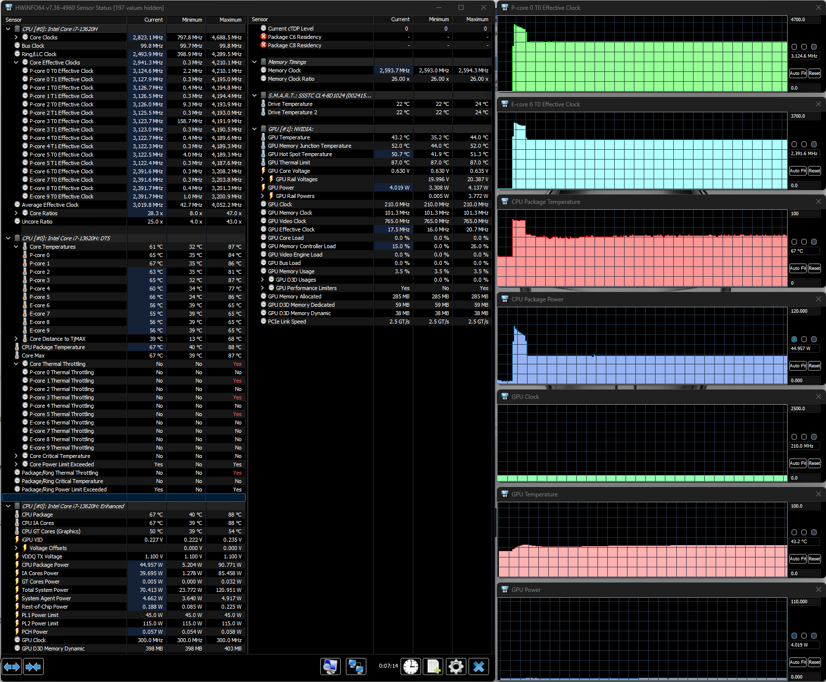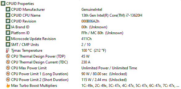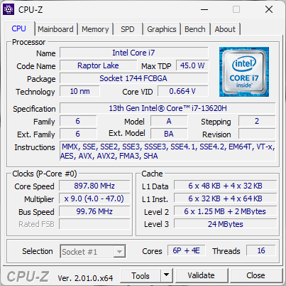 | Процессор | Intel Core i7-13620H (6+4 ядер/16 потоков, 2,4—4,9/1,8—3,6 ГГц, 35—45/115 Вт) | |