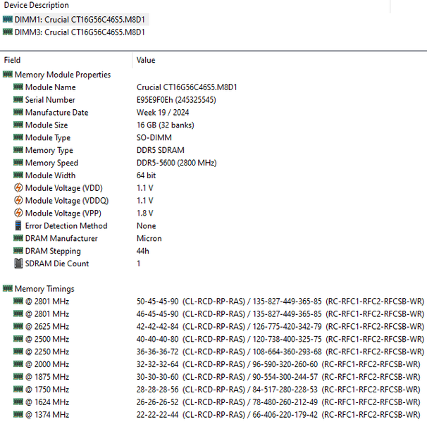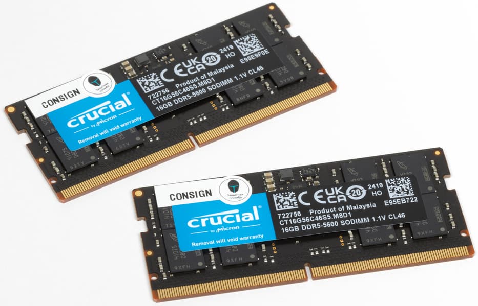 | Оперативная память | 32 (2×16) ГБ DDR5-5600 (2 × Crucial CT16G56C46S5.M8D1) оба слота SO-DIMM заняты | |