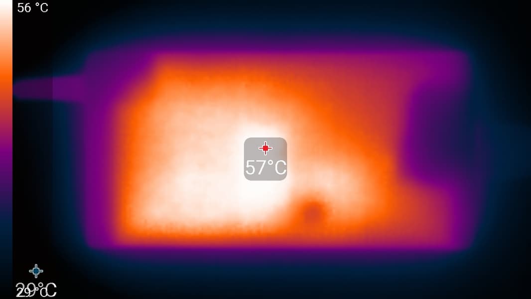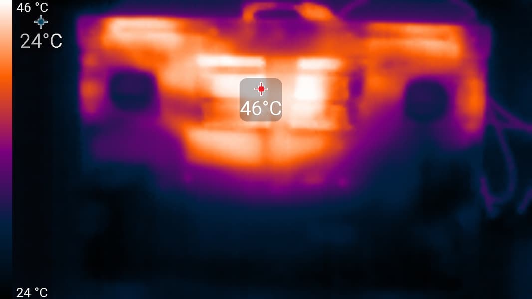 Справа и слева на заднем торце корпуса, а также на боковых кромках имеются решетки, через которые система вентиляции выбрасывает нагретый воздух. Подогрева нижней части экрана при этом не происходит, поскольку он выдвинут чуть вперед относительно заднего края корпуса.