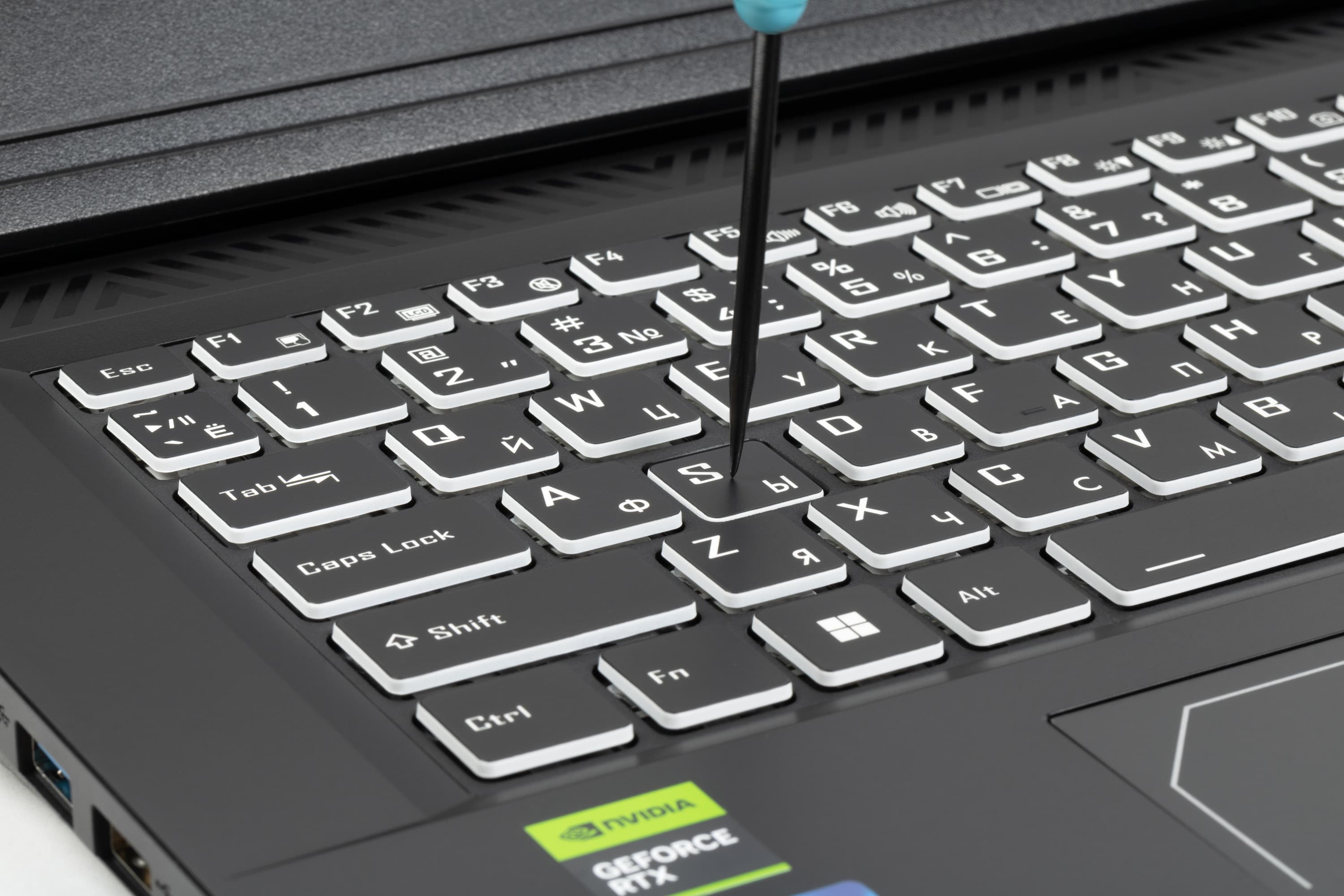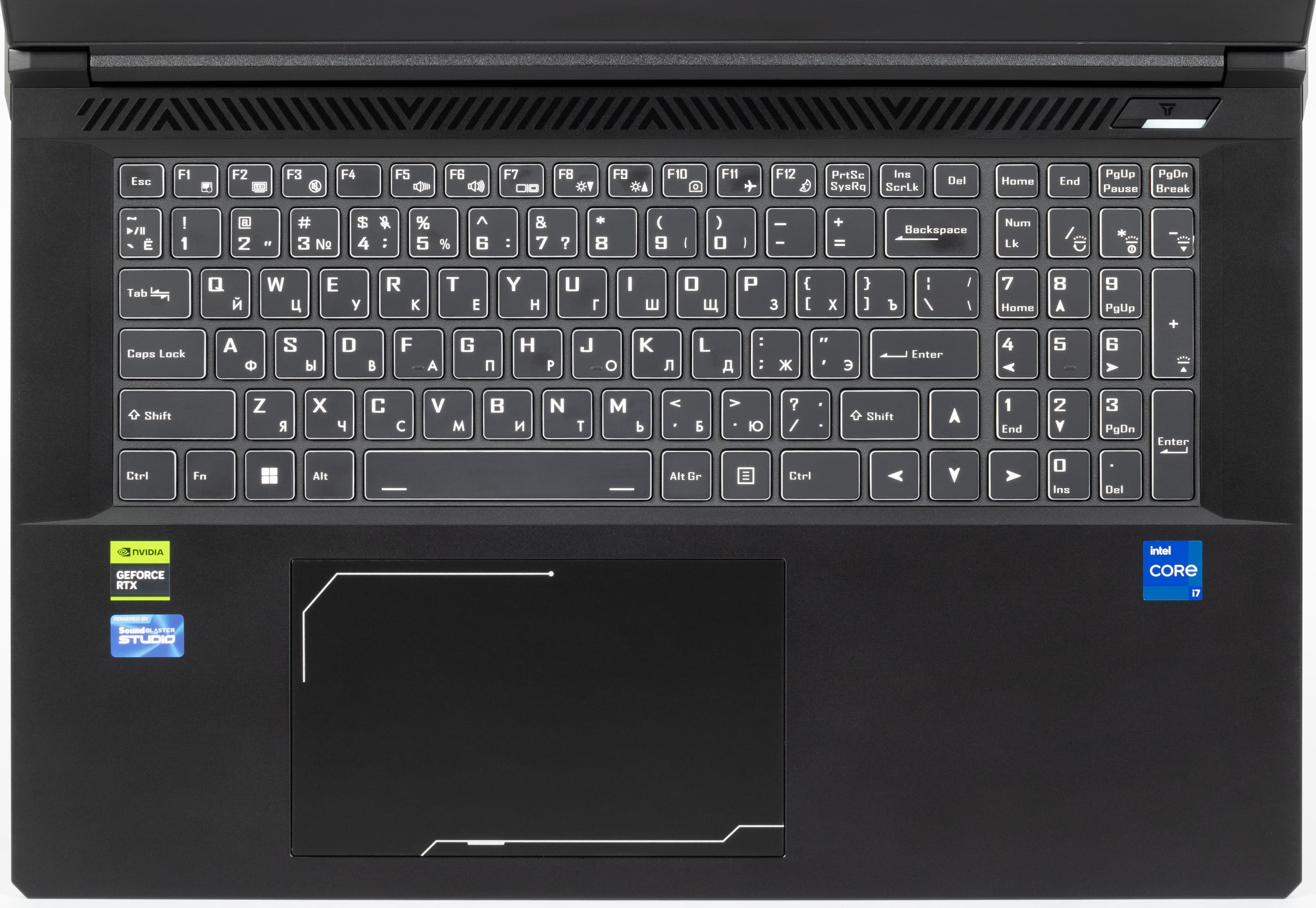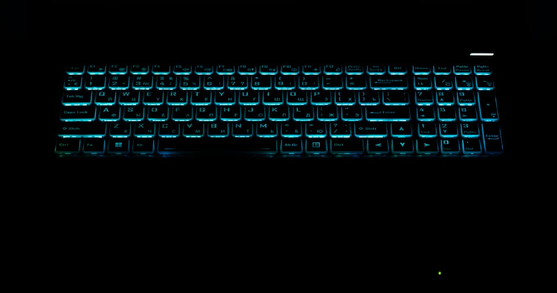 Есть и еще один подсвечиваемый элемент: тонкая полоса почти по всей ширине верхней части заднего торца, спереди она не видна. Отдельного управления для нее нет, цвет и яркость будут теми же, что и для клавиатуры.