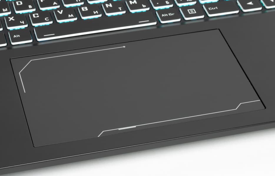Тачпад очень большой: 151×91 мм, его поверхность чуть заглублена. Выделенных клавиш нет, но левый и правый ближние его края вполне могут работать как соответствующие кнопки мыши. Сам по себе он вполне удобный, разве что изрядно смещен влево, и при печати левая рука может касаться его поверхности, вызывая непредсказуемые перемещения указателя; на этот случай предусмотрено сочетание клавиш для быстрого отключения тачпада.