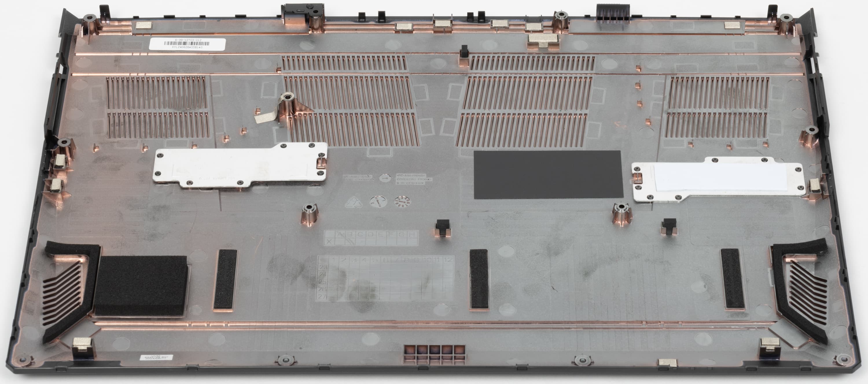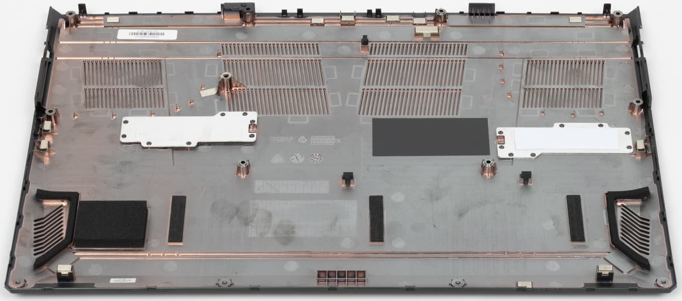 Чтобы снять нижнюю крышку, надо удалить 13 винтов, один из которых заклеен стикером. Ранее в компании нас заверяли, что при необходимости (например, чтобы добавить второй SSD) ее можно снять без негативных последствий в плане гарантии.