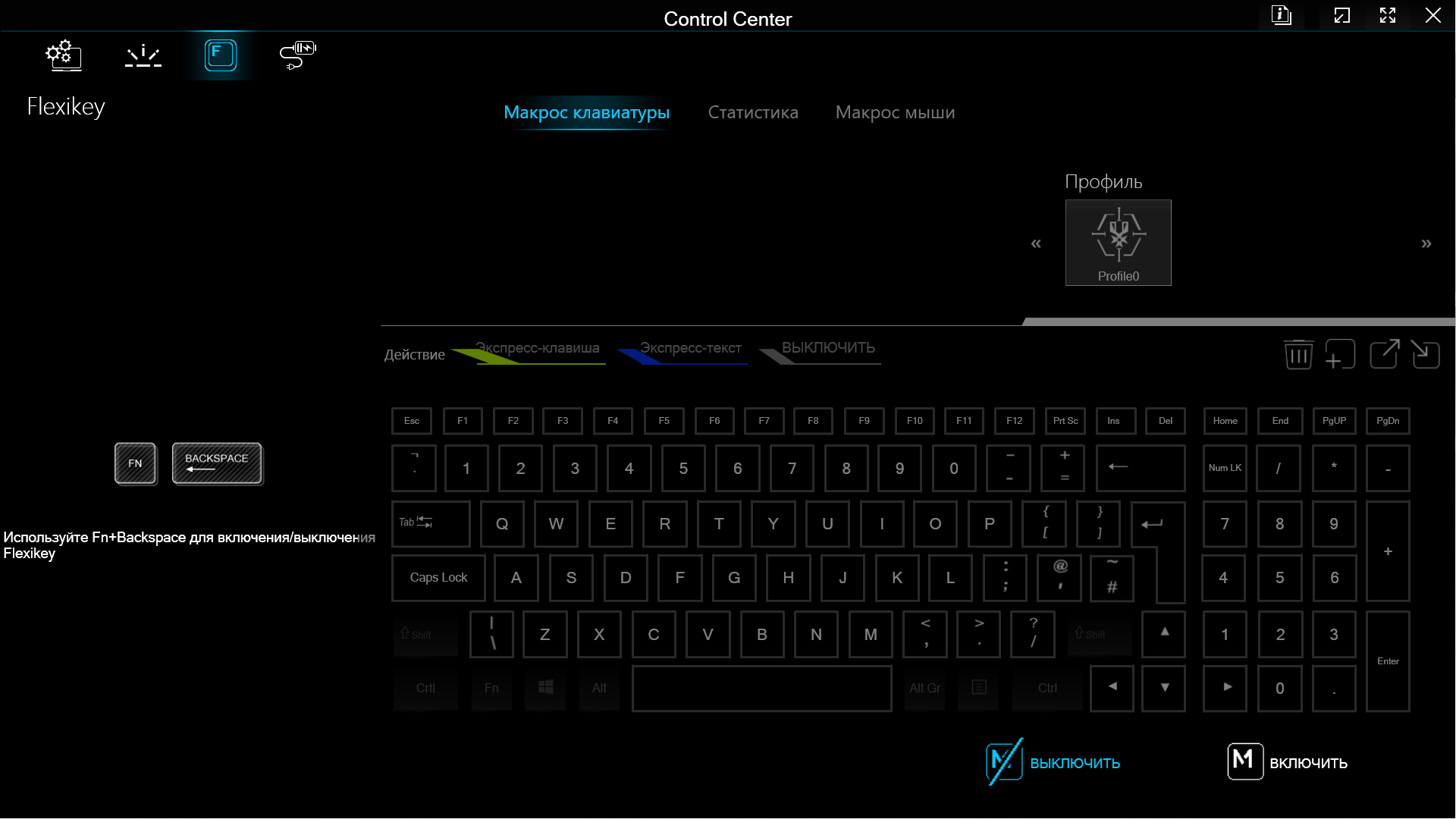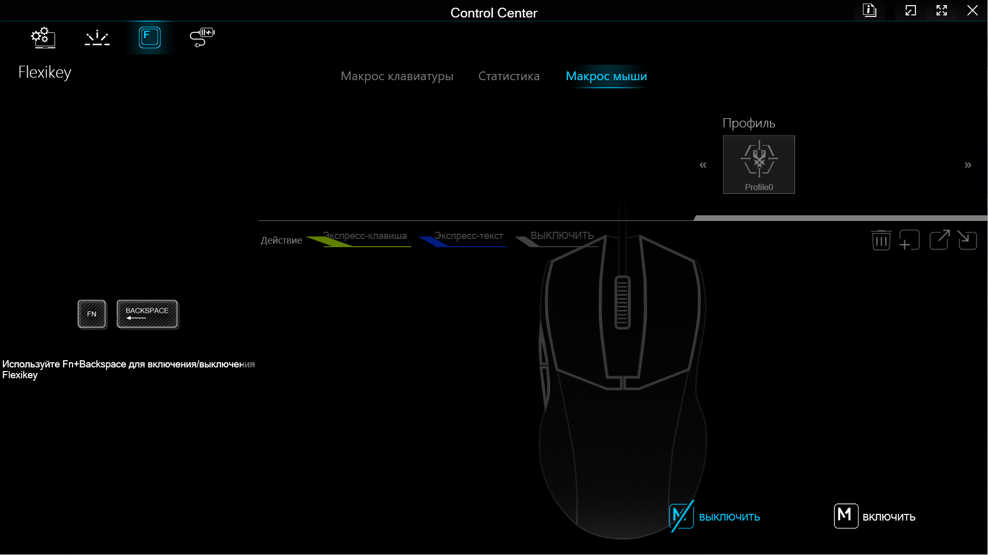 Третья кнопка «Flexikey» позволит создавать макросы для клавиатуры и мыши, что бывает полезно в играх.