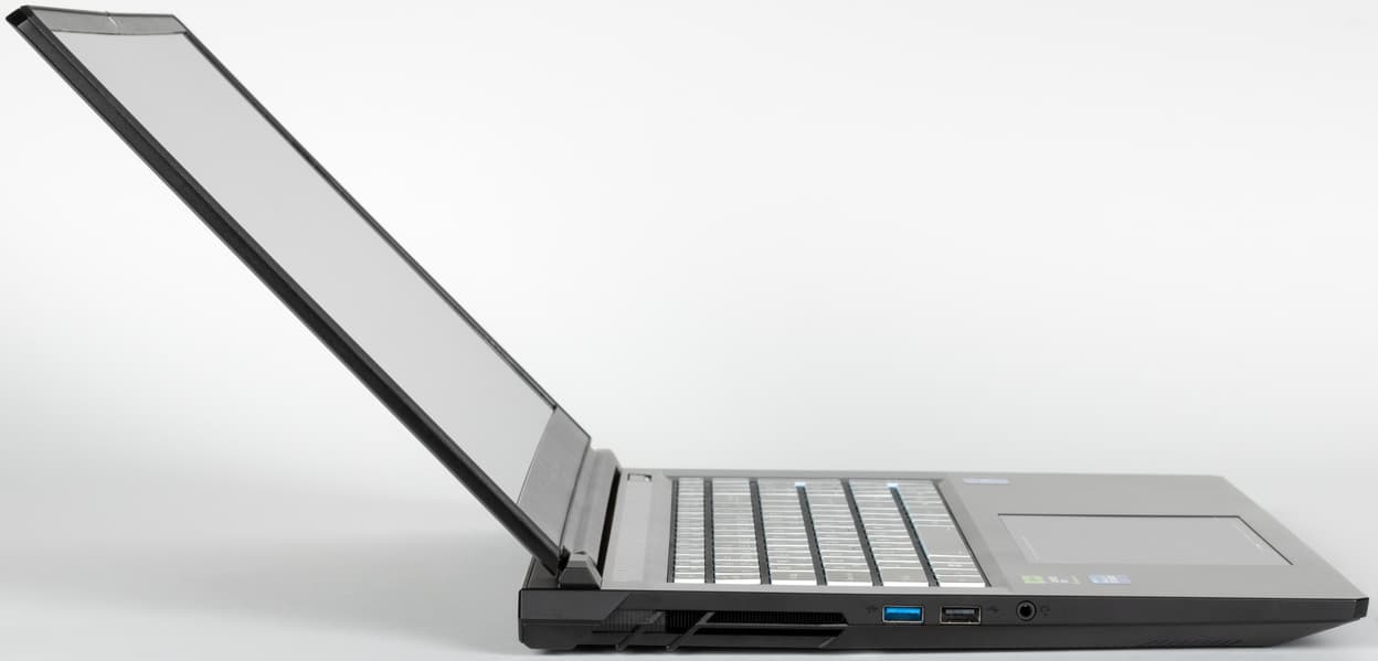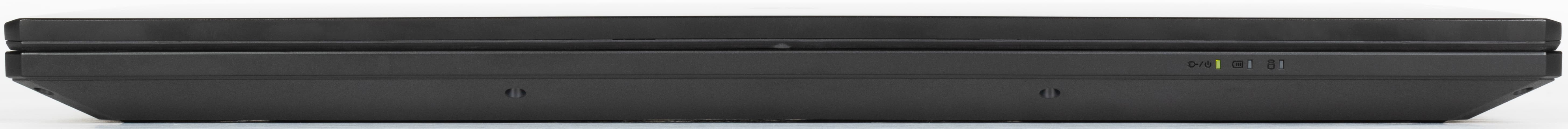 Наши измерения показали совпадение с обозначенными в официальных источниках длиной и шириной, но с толщиной, как обычно, есть разночтения: заявленные 26,8 мм мы найти так и не смогли, даже у самого скоса передней кромки получилось 27,4 мм, а с расположенными там же ножками — 28,3 мм. В самом толстом месте, ближе к заднему торцу, штангенциркуль показывает 29,5 мм, задние ножки добавляют до 32 мм. Но для игровых ноутбуков это не так уж много.