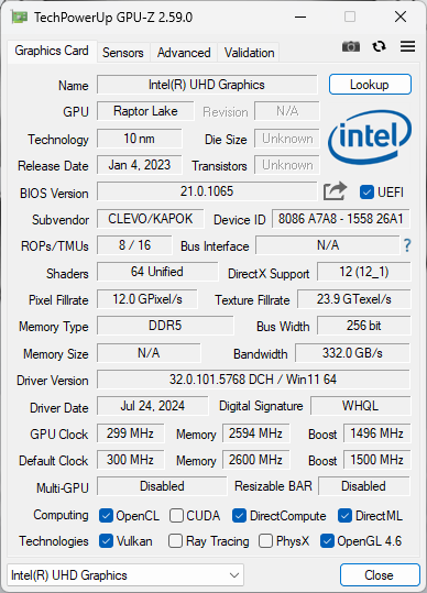 | Видеоподсистема | дискретная Nvidia GeForce RTX 4060 Laptop (8 ГБ GDDR6, заявлено до 115 Вт), интегрированная Intel UHD Graphics (64EU) | |