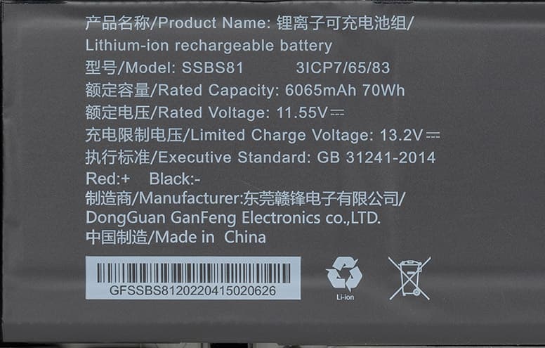 | Батарея | 70 Вт·ч, литий-ионная | |