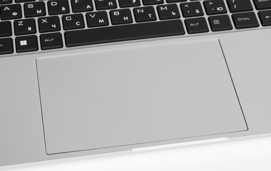 Тачпад огромный: 141×95 мм, без выделенных клавиш (но левый и правый ближние его края вполне могут работать как соответствующие кнопки мыши), поверхность слегка заглублена.