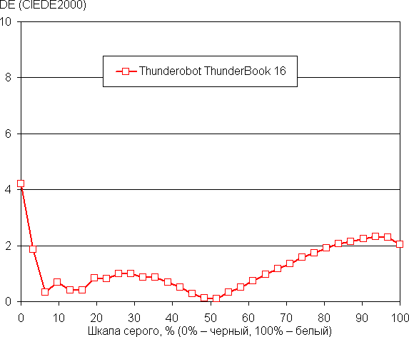 В ноутбуке Thunderobot Thunder Book 16 используется 16-дюймовая IPS-матрица с разрешением 2560×1600 пикселей (отчет edid-decode).