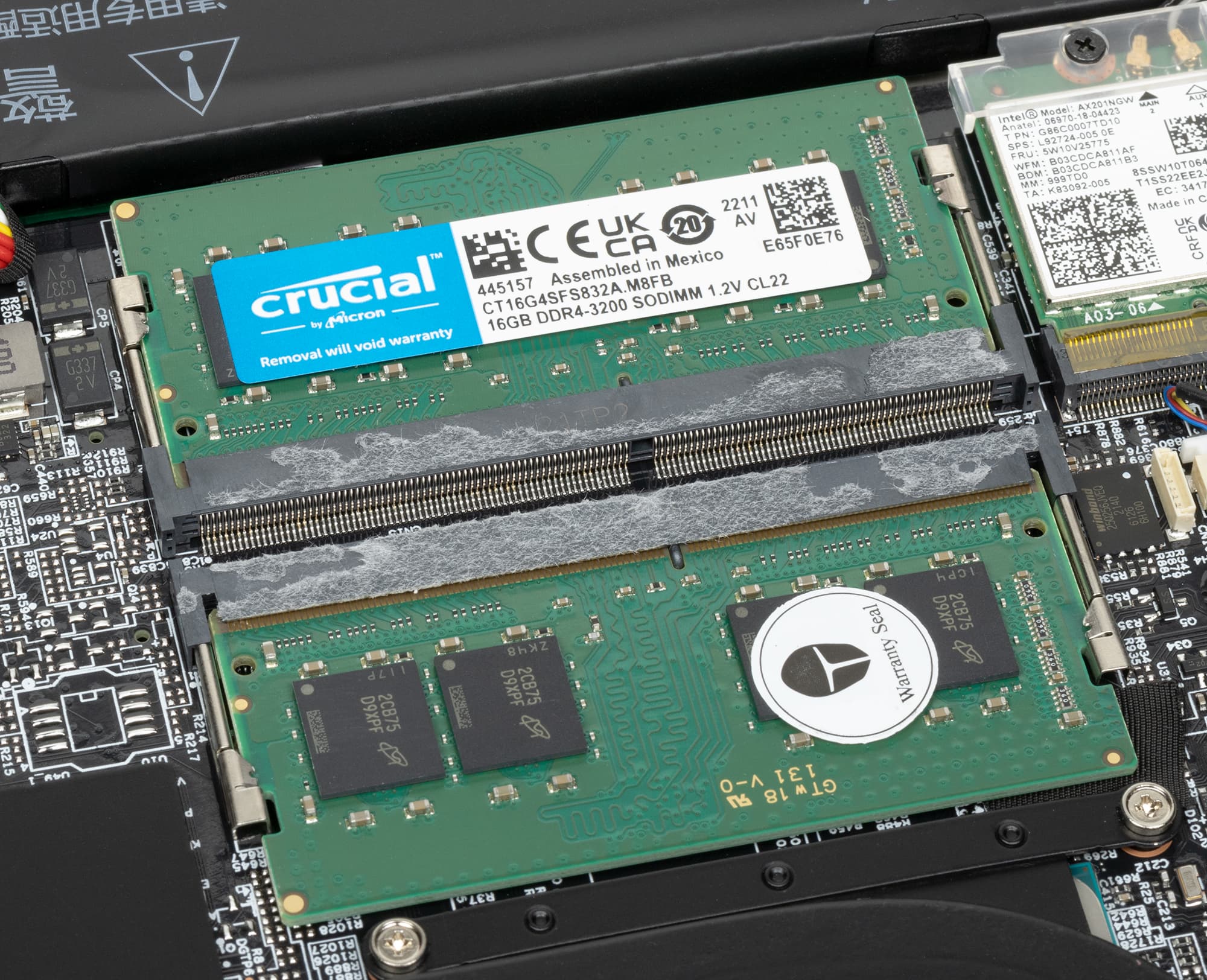 Хотя возможна установка модулей памяти вплоть до DDR5-4800, в данном случае производитель решил немножко сэкономить и установил два SO-DIMM DDR4-3200, которые работают в двухканальном режиме.