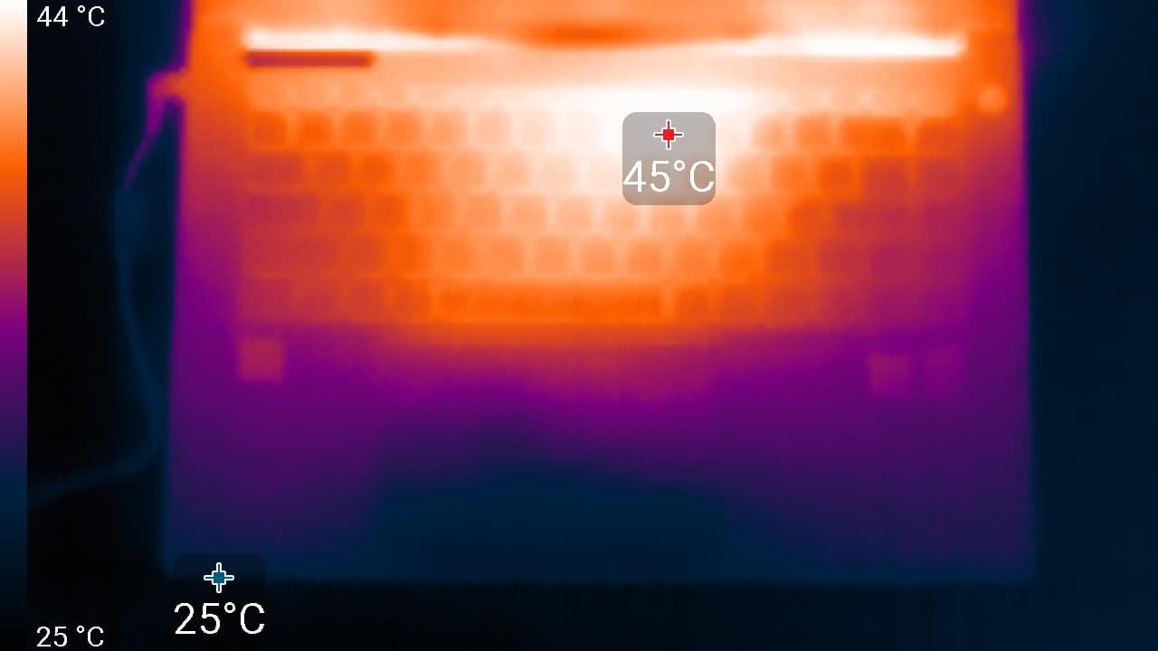Ниже приведены термоснимки, полученные после долговременной работы ноутбука под максимальной нагрузкой на CPU и GPU: