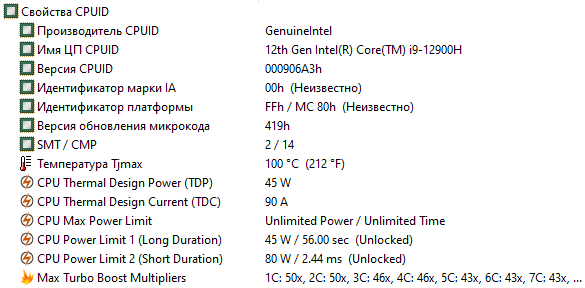 | Процессор | Intel Core i9-12900H (6+8 ядер/20 потоков, до 3,8/5,0 ГГц, 45—115 Вт) | |