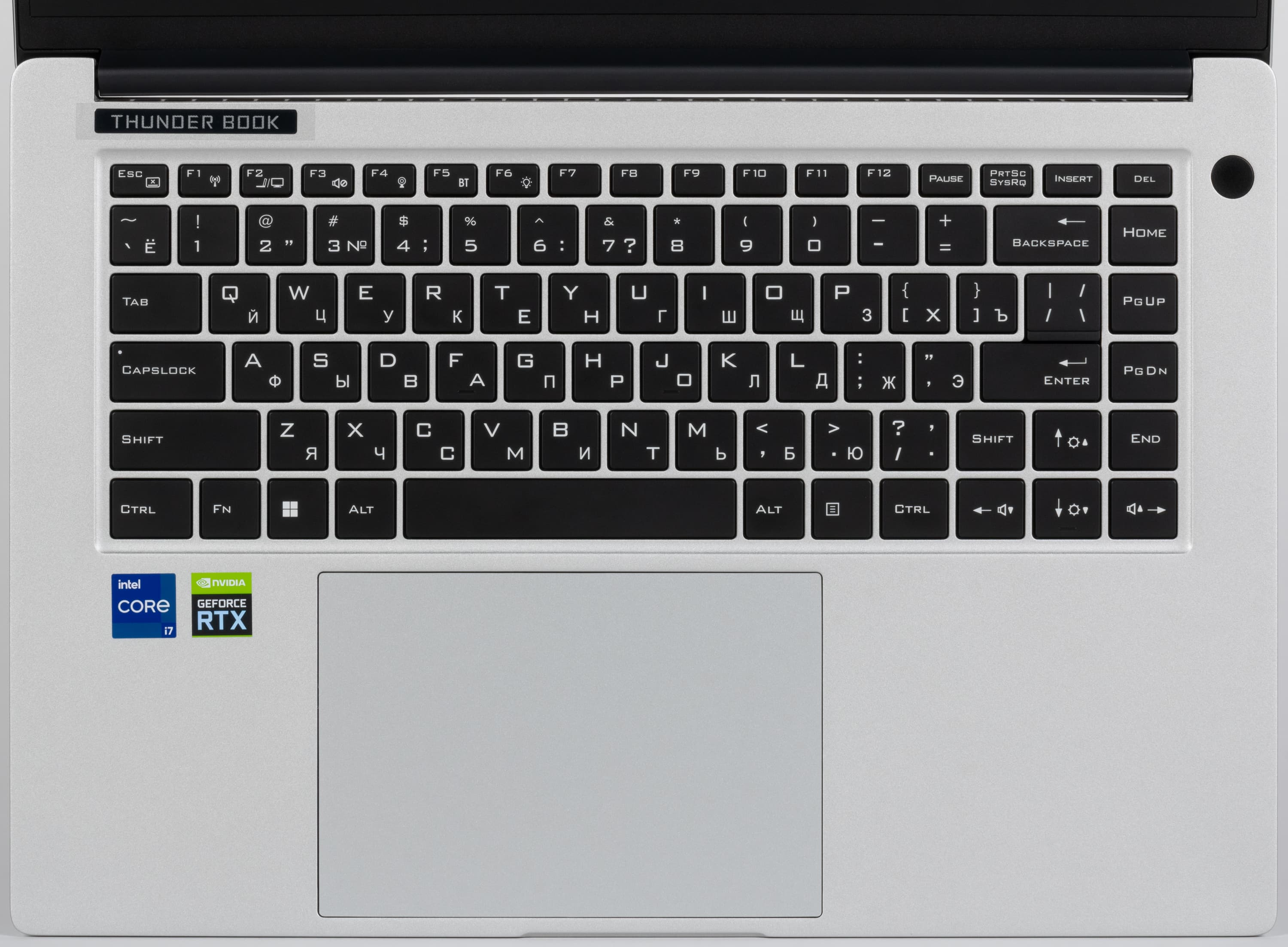 На крышке имеется лишь логотип серии Thunderobot с зеркальными поверхностями. При работе он не подсвечивается.