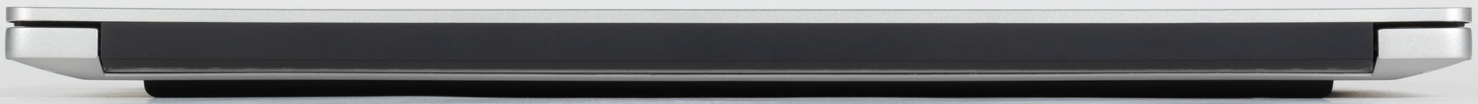 Корпус изготовлен из сплава алюминия и магния, поэтому прочен и надежен. Можно не бояться отпечатков пальцев на матированной поверхности крышки и клавиатурной панели при традиционном обращении. Петли и доводчики помогают открыть крышку, а в закрытом состоянии она удерживается еще и магнитами, расположенными под клавиатурной панелью справа и слева у переднего края основания корпуса. Шов между разъемными частями ноутбука ощущается по всему периметру, но подцепить крышку удается лишь спереди, где на основании имеется небольшой уступ. После этого крышка приподнимается и откидывается, но корпус при этом отпрыгивает назад.