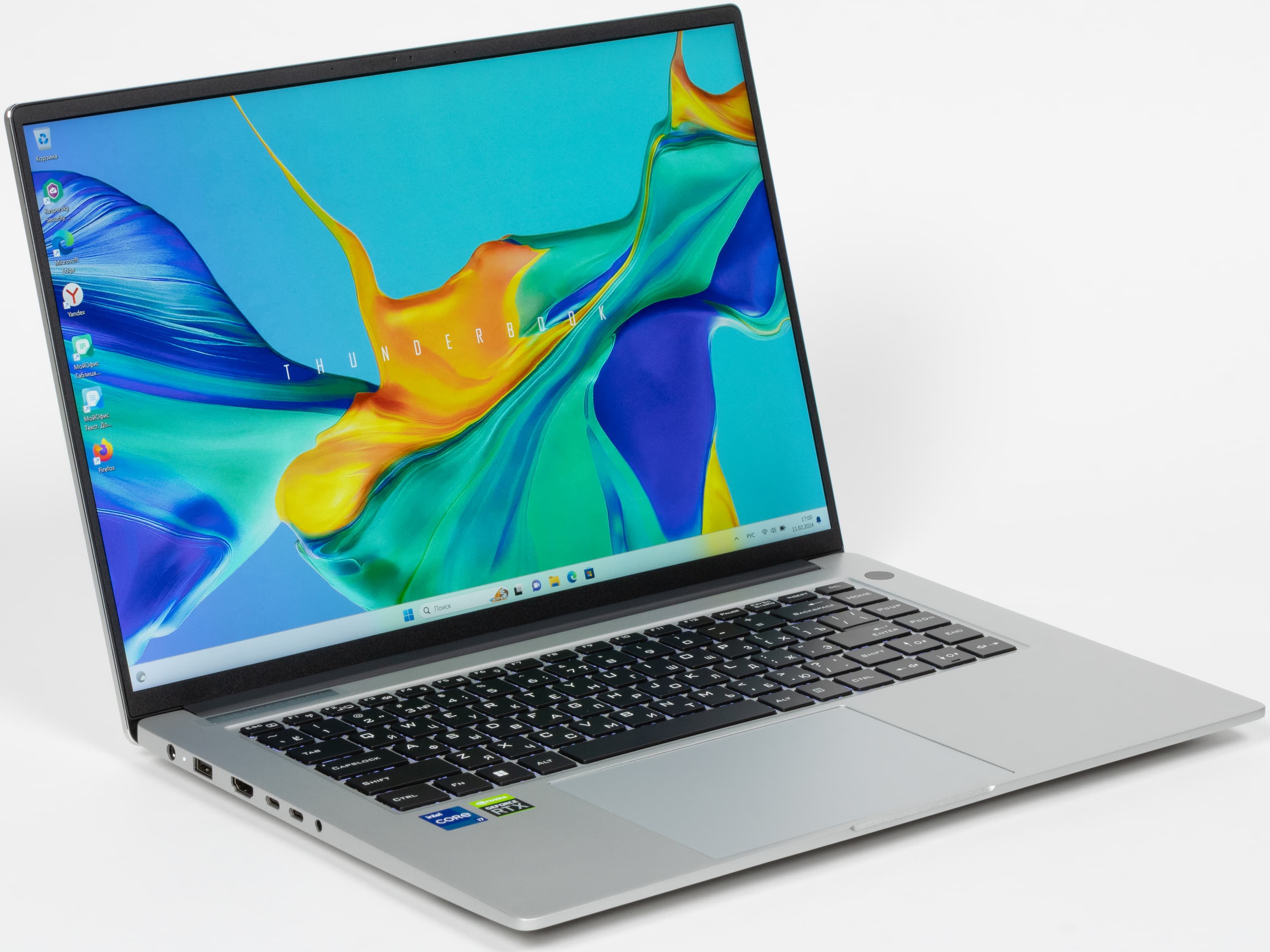 - Thunderbook 16 G2 (не Pro) с экраном 16″ (2560×1600, 120 Гц) на базе Intel Core i5-12450H с 16 ГБ DDR4, NVMe-накопителем 512 ГБ и двумя портами USB3.2 Gen2 без Thunderbolt 4