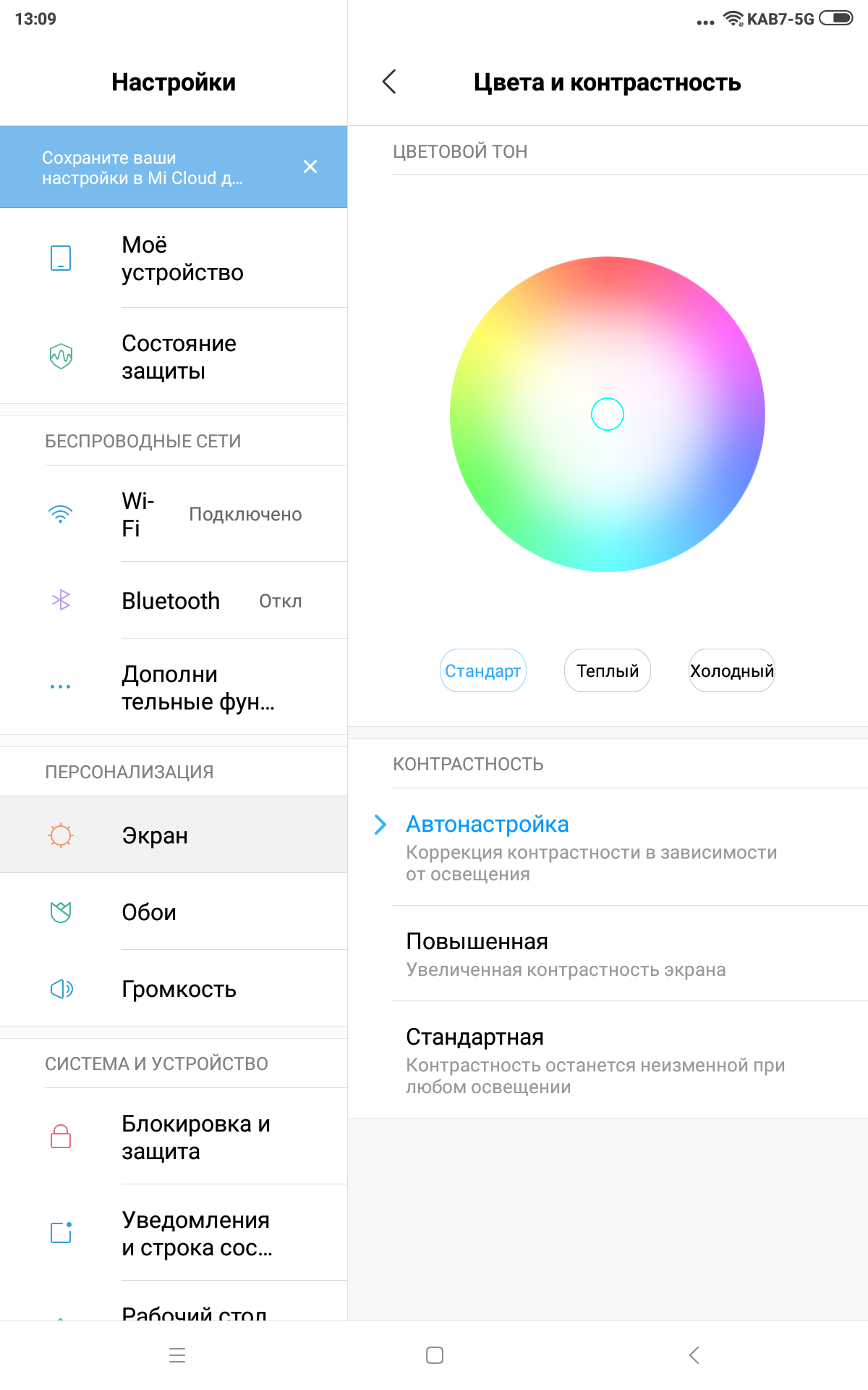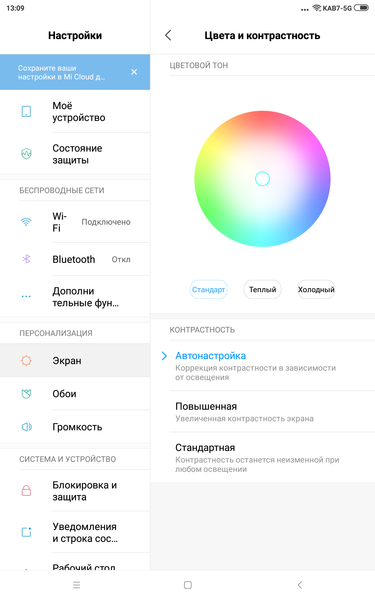 Цвета на экране Xiaomi Mi Pad 4 имеют естественную насыщенность, цветовой баланс у Nexus 7 и у тестируемого экрана немного различается. Фотография получена в случае профиля Автонастройка, выбранного по умолчанию в настройках экрана: