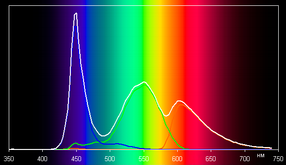 Спектры показывают, что светофильтры матрицы в умеренной степени подмешивают компоненты друг к другу: