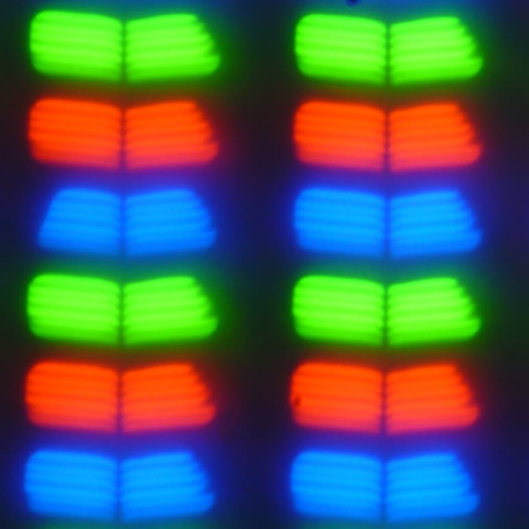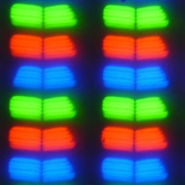 В данном аппарате используется матрица типа IPS. Микрофотографии демонстрируют типичную для IPS структуру субпикселей: