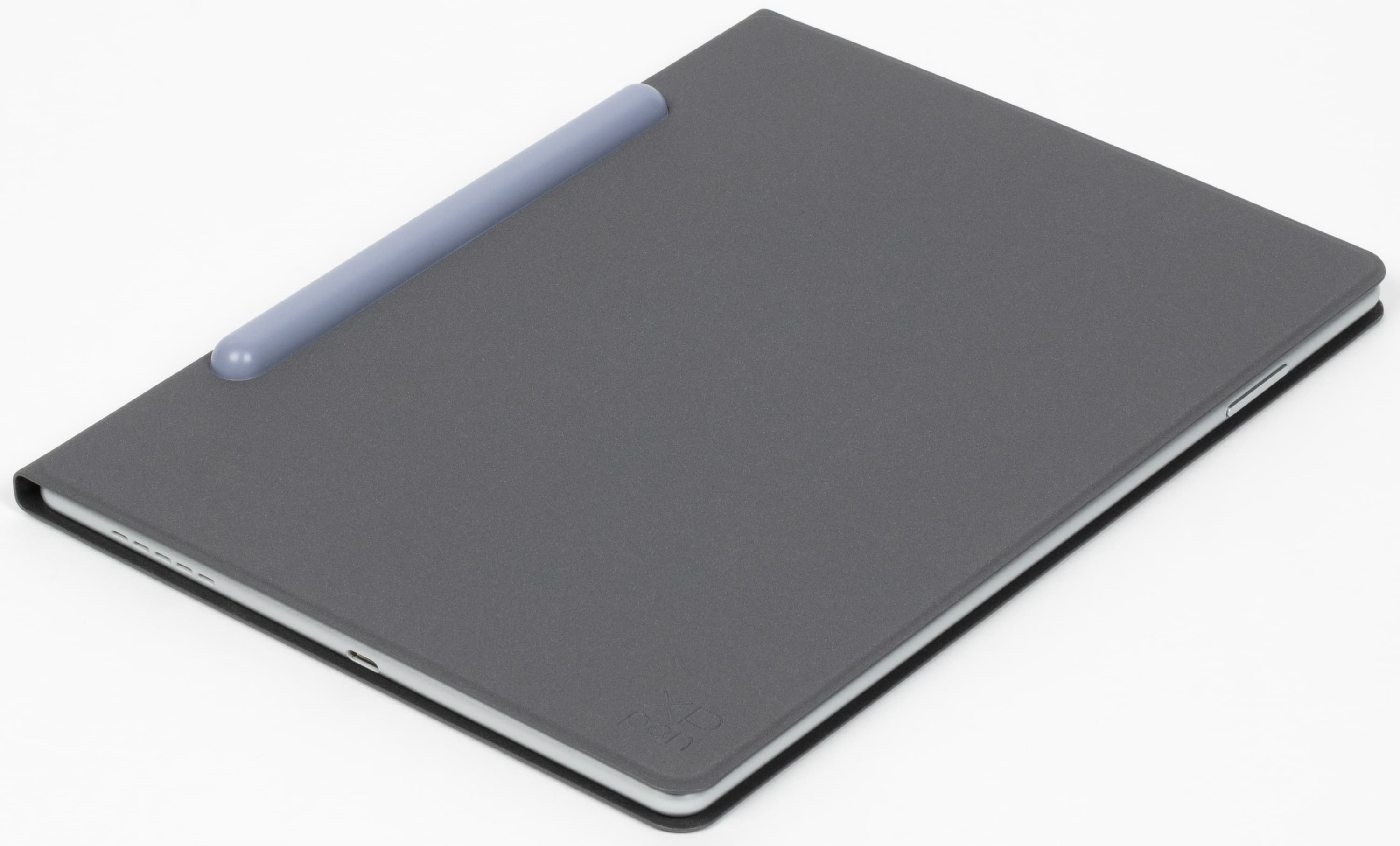 Выпуклая часть, естественно, представляет собой встроенный футляр для стилуса. Решение, возможно, не идеальное (все-таки и выглядит странно, и в портфель класть не очень удобно), но единственно возможное, если мы не хотим существенного увеличения общих габаритов и проблем с отсоединением стилуса (например, если бы он был не внутри чехла, а крепился магнитом снаружи).