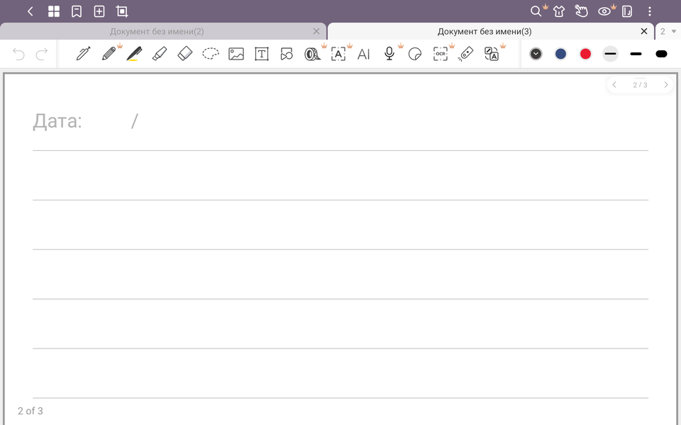 Список предустановленного ПО, не входящего в стандартный набор Android, весьма невелик, и прежде всего это фирменное приложение XPPen Notes — программа для рисования и создания заметок. У полученного нами на тестирование экземпляра XPPen Notes была доступна в условно-бесплатной версии, где часть опций предлагалось купить (точнее, оформить на них платную подписку). На скриншоте ниже это все опции, которые отмечены маленькой короной.