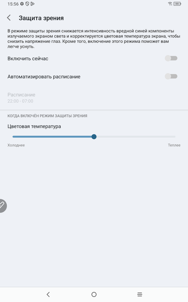 Присутствует уже традиционная настройка, позволяющая снизить интенсивность синей компоненты.